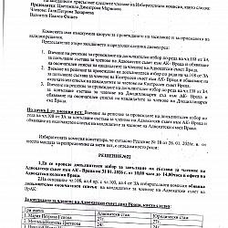 Протокол и решения на Избирателна комисия