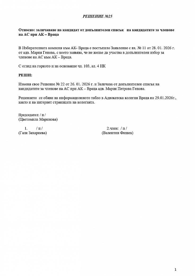 Решение № 25 на Избирателна комисия