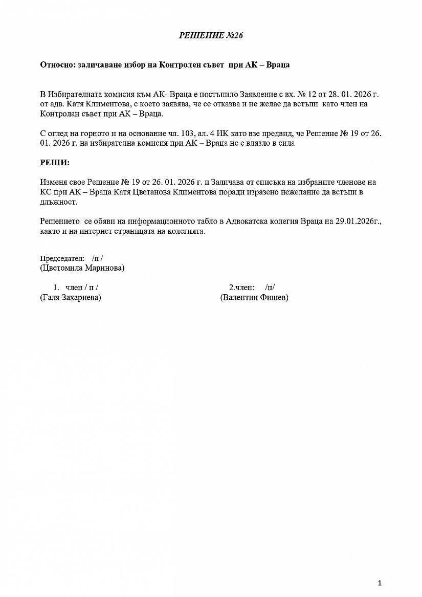 Решение № 26 на Избирателна комисия