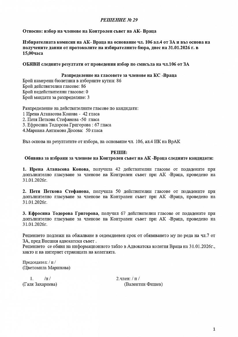Решения на Адвокатски съветРешения на Избирателна комисияРешения