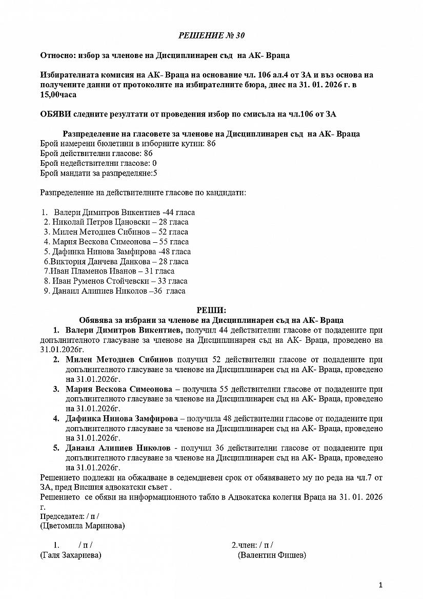 Решение № 30 на Избирателна комисия
